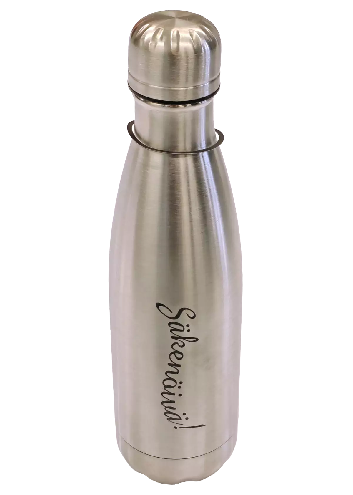 Säkenöivä teräspullo hopea